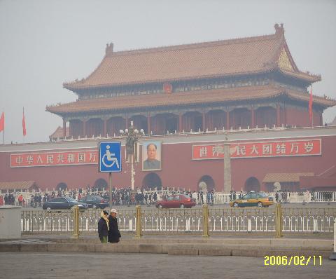 9:00 a.m. Thirteen of us set off on foot with our tour guide Peter for the Imperial Palace. As we walked, Peter pointed out food and shopping places as well as landmarks and historical areas. Beijing is a great city to vacation in because of the cultural immersion one can experience. Many buildings are labelled with both Chinese and American letters making navigating kind of easy in this foreign country. I understand flights to Beijing are not that expensive relatively speaking. It would be fun to spend three days in Beijing as long as one could handle the very long plane flights. The Imperial Palace was very interesting. We toured the Palace, the Forbidden City ( it was forbidden to commoners), Chairman Mao's Tomb, Tiannemen Square as well as some of the local shops and community areas. When we went to Mao's Tomb we got in a long line of people. Suddenly a man dressed in green garb grabbed Brian's (one of the mature looking adoptive parents) arm and motioned for him to follow him. Our group followed along not really understanding what was going on. He ran Brian ahead of hundreds of China's citizens in line. It felt very odd. He would just keep pulling him along and making him race ahead. We all were confused but we kept racing ahead behind him. In America if you ran ahead of people who were in line you'd hear some angry comments and you might be in physical danger, but here not a sound was made by anyone. We continued running all the way to the building where Mao's body lay in an enclosed glass chamber. I thought this man pulling Brian along was a government official. We really don't know why this happened? When he was done racing Brian to the front of the line, he expected to be tipped and Brian tipped him. Then he pulled out a cigarette and lit one for Brian and one for himself. As weird and unsettling as this was it gave us all something to laugh about later. When we told our waiting tour guide what had happened he said, "Next time just wait in the line." Next we went to the Forbidden city. The city has a huge wall (actually more than one) around it that was used to protect the emperor from would be assassins. Inside the city there are many beautiful buildings each used for a different purpose by the emperor. I learned that when a Asian building has many animals on the roof's corner it is a sign that it is a building for a high ranking leader. Also when a building has a double roof it signifies that someone of high ranking importance lives there. I am enclosing some pictures from today's walking tour.
