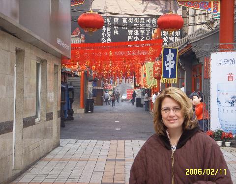 Diane at the entrance to a Beijing Street Food Market