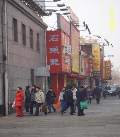 Pictures were forbidden in the Forbidden City, only because I forgot to charge the camera and left the other camera at the hotel. We bought a disposable camera and will develop pictures of the Forbidden City when we return home with My My. In the afternoon we went walking (just Pete and Diane) along a street with small shops and vendors. It was a fun experience to be among the locals without a tour guide. The Chinese people we meet were very nice and courteous. Sometimes street vendors who were selling were pushy. They will say "Hey lady" or "Look, look" then they say a Yuan amount and keep lowering that Yuan amount until a tourist buys their goods or walks far enough away from them. We would tell them "BU YA" which means no thank you.